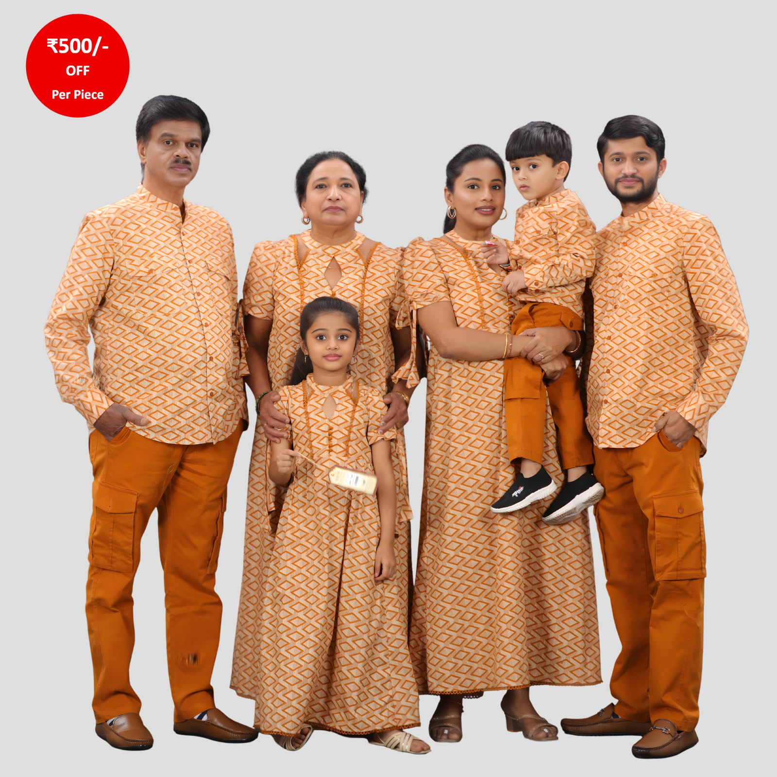 Pumpkin Spice Set – Maxi Dress & Mandarin Shirts with Cargo-Style